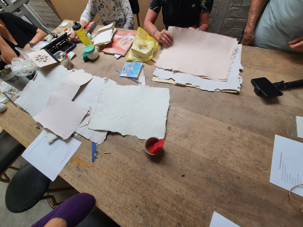 Elvia María Toledo, a devoted member of the association, shared how this enterprise came to life. It all began when a foreigner invited them to Tumbaco, Quito, where they learned the process of making recycled paper. “We decided to put this teaching into practice, even without the right equipment,” Elvia explained. Years later, the women continue to work with the same method, producing their items entirely by hand.